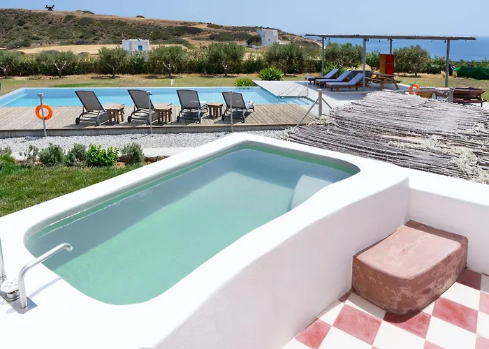 W obiekcie z wyposażonym aneksem kuchennym znajdują się piekarnik i zmywarka do naczyń. Dojazd do najbliższego lotniska Melos Island National zajmuje 15 minut. Dostępność jacuzzi pozwala gościom na bardziej relaksujący pobyt. Ten apartament dysponuje zewnętrznym basenem oraz patiem.